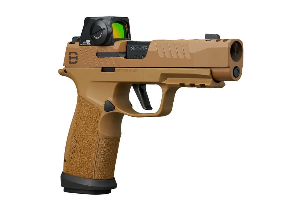 The stainless steel slide incorporates DH3-specific serrations and lightening cuts, finished in durable Coyote Cerakote for a distinct, purpose-driven appearance. An optic-ready SIG-LOC™ compact footprint supports seamless red-dot integration, while X-RAY3 day/night sights provide rapid target acquisition in any lighting condition.