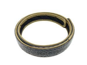 The Noose will accommodate up to 44” waist and still have 8” of overlap. By inserting the belt one loop back from either side of your front belt loops it allows you to cinch and overlap at your side rather than the front of your pants. This gives you more leverage when setting up the belt. The added padding puts no undue pressure on your hip bones yet still allows the overlap to fall in the front over the two loops leaving your holster side one layer thick. Since the stiffener has been doubled there’s no need to have the overlap fall under your holster and push it farther from your waist. The Noose is double reinforced and rounded on both ends which allows it to thread onto your pants with ease and stand up to the most demanding load-out.